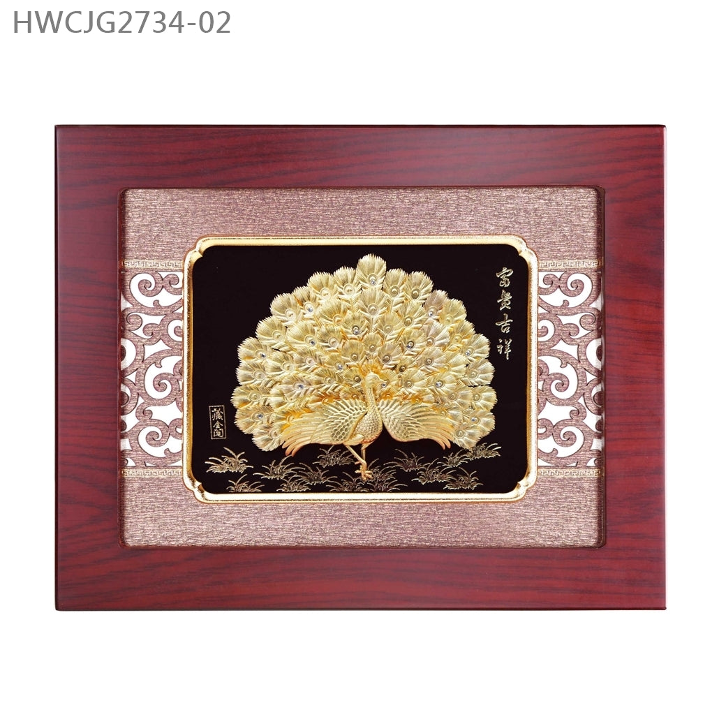 立體24K金箔-孔雀開屏富貴吉祥金箔掛畫