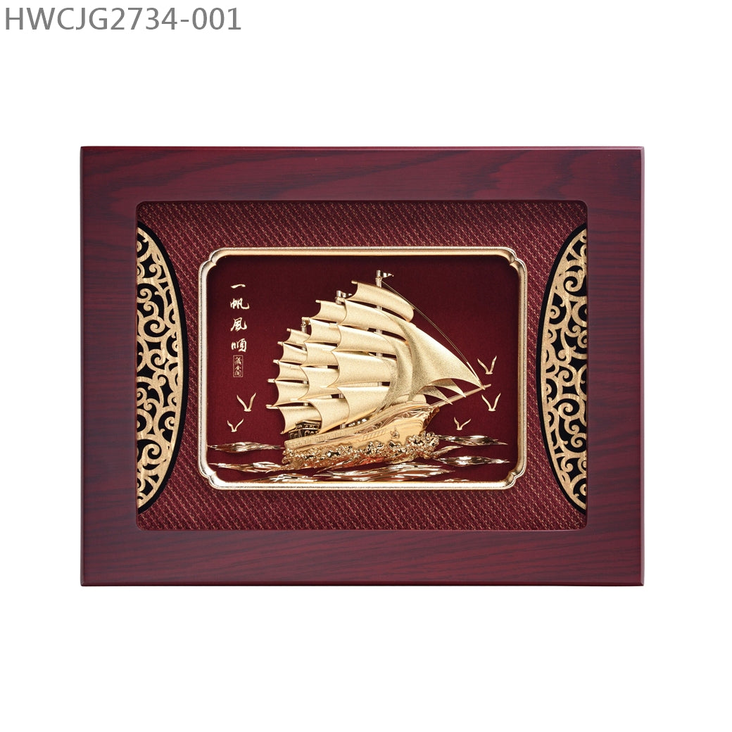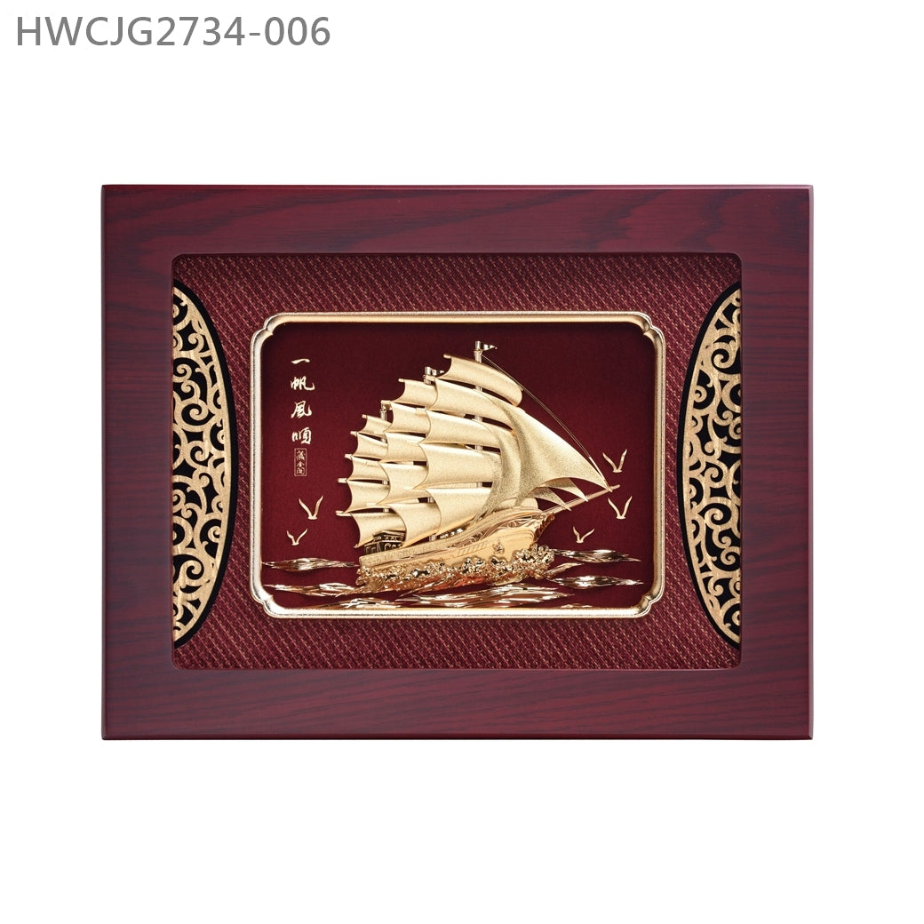 帆船象徵職業生涯如 “航行”,送贈一帆風順金箔掛畫,
