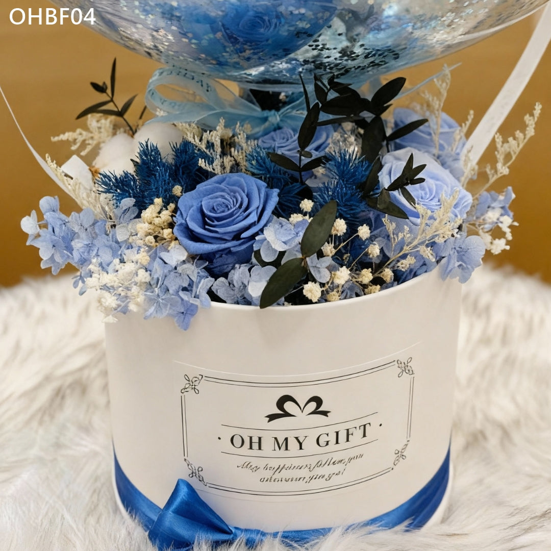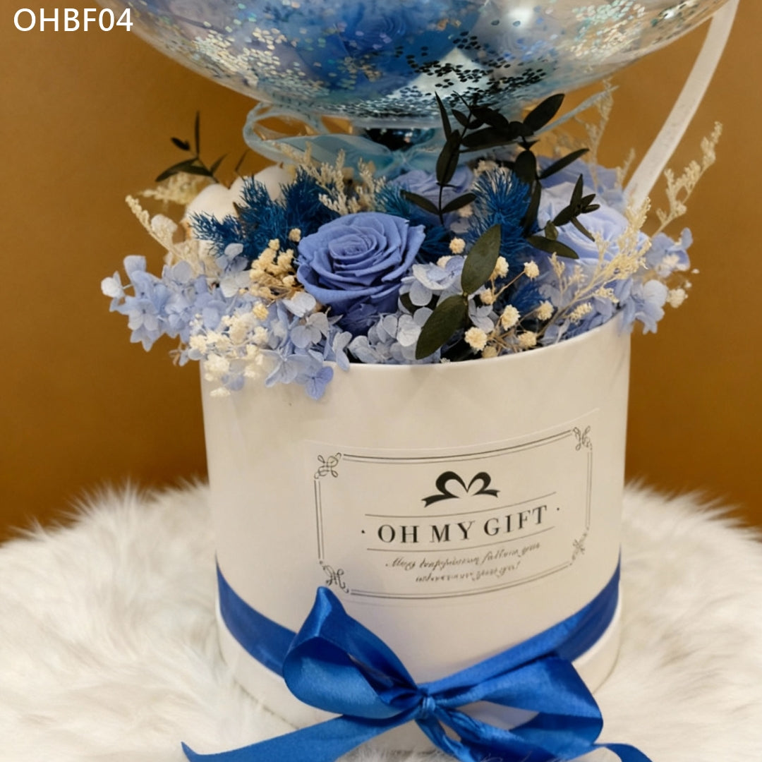 OHBF04 藍色-氣球永生花花盒 開張花盒 生日花盒 節日花盒 告白花盒 畢業花盒